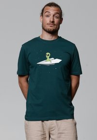 ALIEN ON A PAPER PLANE - T-shirt print - glazed green