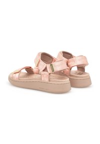 Sandalen in roségoud met verstelbare bandjes, textuurmateriaal, dikke rubberen zool en een minimalistisch ontwerp. Open-toe stijl voor ademend vermogen.
