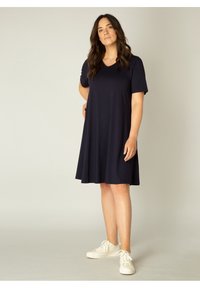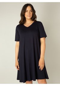 Ik draag dit als tuniek in de winter met een cardigan of vestje erover. Komt wel bijna tot aan de knie en ik ben 169cm groot.
