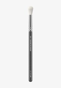 Met het kwastje kunnen overgangen in de ooglidplooi door zachte, vegende bewegingen worden gemengd. Gebruik de zijkant van het kwastje met zachte, glijdende bewegingen om te blenden. Ideaal voor geperste en losse poederoogschaduwen of oogschaduwpigmenten.